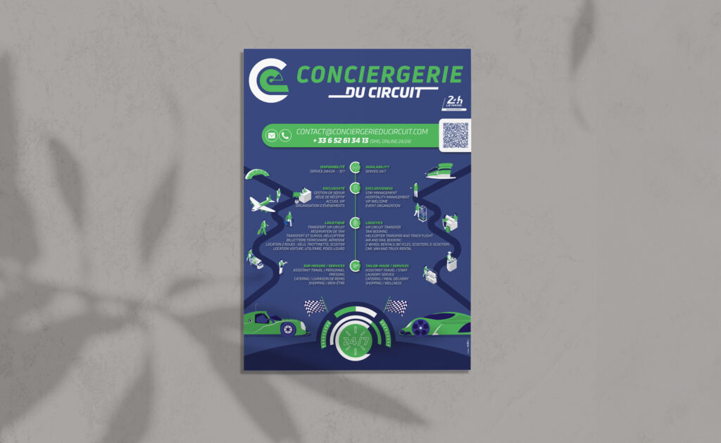 Grâce à ce travail, la conciergerie du circuit bénéficie désormais d’une image cohérente et reconnaissable, qui renforce sa présence lors des événements. Cette collaboration a permis de mettre en avant leur expertise tout en valorisant leur capacité à offrir un service sur mesure, en adéquation avec les attentes de leurs clients.
